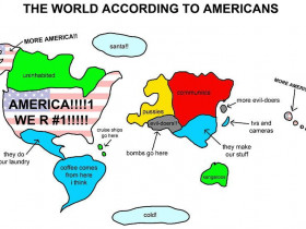 Vieleicht sieht er die Welt auch so ähnlich, wie in einer etwas älteren Krikatur. ^^