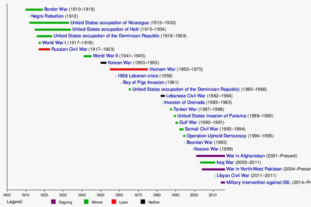 Meine Güte, bevor dieser Thread in einen Jubelthread für den US Präsidenten umschlägt -- den gibt es aber doch schon -- und die USA preist, der Hinweis, daß dieser Staat die meisten Kriege geführt hat mit furchtbaren Folgen. Angehängt eine Übersicht, die 2012 endet, danach kamen bekannte weitere.