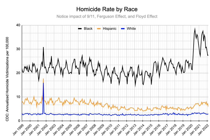 Wird ja wokerseits gerne behauptet es läge am alten weißen Mann samt seinem "Rassismus" welcher die signifkant höhere Mord - und Gewaltrate Schwarzer verursacht.