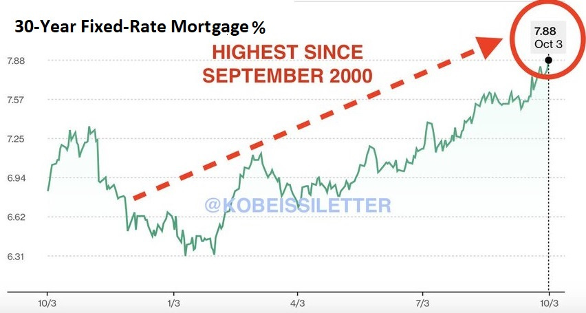 "Die Zinssätze liegen über dem Niveau von 2007, und das in einer Welt mit doppelt so vielen Schulden. Das hätte nicht möglich sein dürfen, aber so ist es nun einmal. Immobilien implodieren in der Regel, wenn die Hypothekenzinsen in die Höhe schießen, und dieses Mal ist es keine Ausnahme. Wenn die Zinsen steigen, brechen die Hypothekenanträge ein.