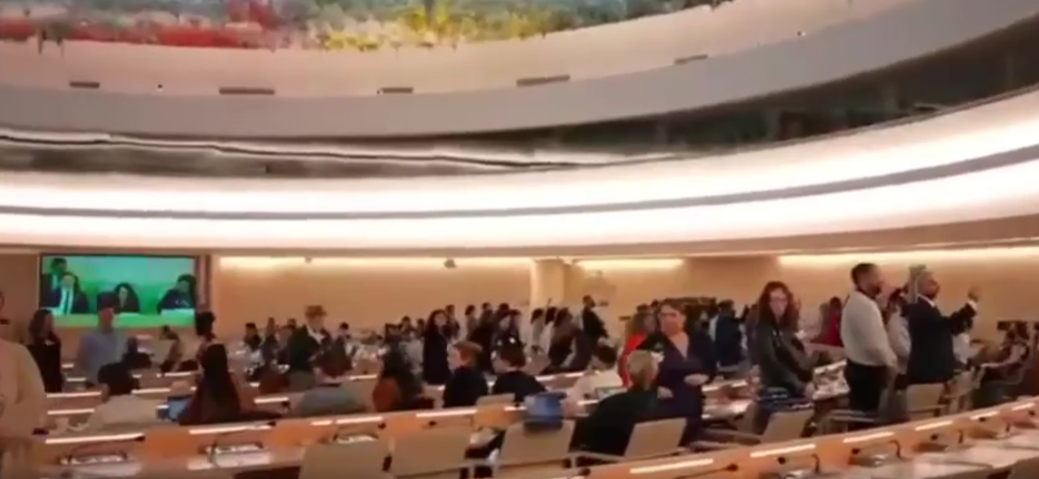 Bei der UN-Menschenrechtskonferenz hörten zahlreiche Diplomaten der Rede der US-Botschafterin Michelle Taylor nicht zu und wandten sich aus Protest gegen die israelische Bombardierung des Gazastreifens demonstrativ ab.