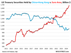 - China und Hongkong zusammen: $1,01 Billionen, +0,3% gegenüber dem Vormonat, +0,2% gegenüber dem Vorjahresmonat (lila).