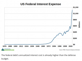 Die jährlichen Zinsen auf die Bundesschulden haben dieses Jahr zum ersten Mal die Marke von 1 Billion Dollar überschritten und steigen exponentiell an.....
