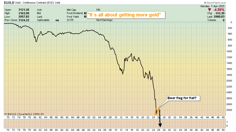 "Ich glaube, irgendeiner wird bankrott gehen. Alles ist stagnierend oder rückläufig, außer Gold.... Diese Art von Dingen endet normalerweise mit Zwangsliquidationen, und ich denke, sie haben letzte Woche begonnen, und wir sehen das heute Morgen. Es wird mehr Schuldenabbau geben, und die Fed ist wirklich nicht in der Lage ... die Zinssenkungen wieder aufzunehmen, weil ... die Leute nach Inflation Ausschau halten ... genau das Gegenteil von dem, was die Fed erhofft.... Die Fed kann wegen der Inflationssorgen nicht lockerer werden, und die Zollsorgen verstärken das natürlich noch. Vor weniger als drei Wochen ... habe ich Ihnen gesagt, dass ich eine Rezessionswahrscheinlichkeit von 60 % für möglich halte. Ich war der Meinung, dass dies nicht mit dem Konsens übereinstimmt, der meiner Meinung nach eher bei 30/35 % lag... Ich glaube, der Konsens liegt [jetzt] bei 50%... Ich kann nur meine 60% erhöhen.... Ich habe immer gesagt, dass der Markt lächerlich überbewertet ist.... Es gibt noch viel Spielraum für eine Normalisierung ... was auf der Grundlage des CAPE-Verhältnisses ein langer Weg nach unten ist.... Es wird chaotisch werden. Das sieht nach einem Deleveraging-Szenario aus, das sich verselbstständigen kann."