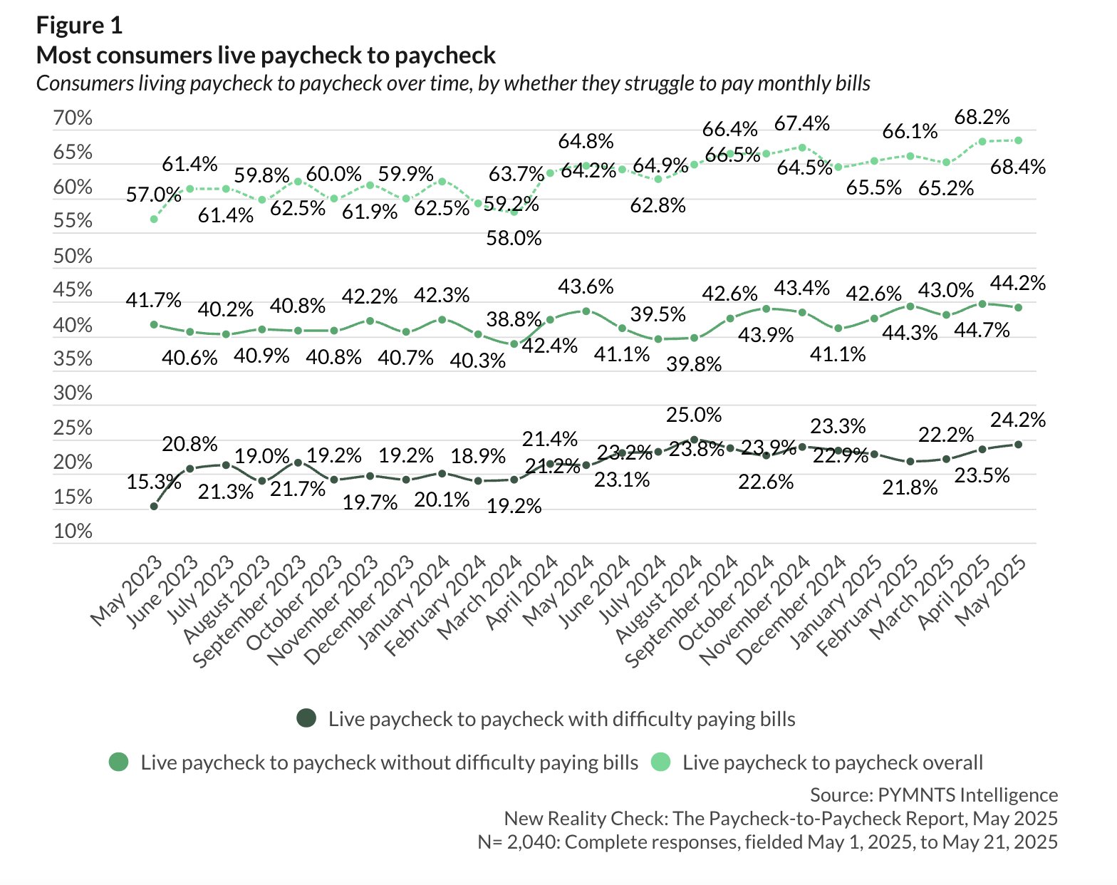 Amanda Goodall (@thejobchick) auf X68% of Americans now live paycheck to paycheck. Read that again. 68% ya'll! PYMNTS’ latest report shows 684 out of every 1,000 U.S. adults are barely…x.com -
