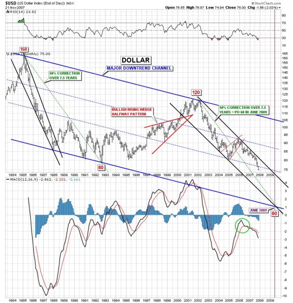 ....Now that the dollar is in free fall we’d expect the US will have problems funding their account deficit. Now that the Bush administration has abandoned the dollar in order to try to save the US economy from depression we expect a currency war will ensue. At 72 to 75 on the USDX the second phase of the dollar collapse will have been completed, which we predicted in 2000.