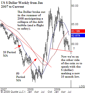 THE U.S. DOLLAR INDEX, which tracks the dollar against other major currencies, fell below its important June low of 78.33 late last week. On Monday morning, it was trading at an 11-month low.