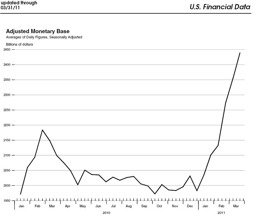 Im November 2010 stieg der Verbraucherpreisindex (VPI) der US-Behörde für Arbeitsstatistik (BLS) im Jahresvergleich um 1,1%. Der VPI stieg im Februar 2011 im Vergleich zu Februar 2010 um 2,11% und lag somit über dem formellen Inflationsziel der US-Notenbank von 1,5% bis 2%.