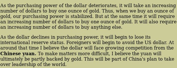 Danke für den sehr interessanten Artikel. Er bestätigt die Informationen von Jim Sinclair und setzt sie in einen breiteren Rahmen. J.S. ist übrigens der Ansicht, dass der € Euro überlebt. Der Dollar ist mit Sicherheit aufgrund der unvorstellbaren Derivatenblase nicht zu halten. Einige europäische Banken hängen da aber auch mit drin. (....)