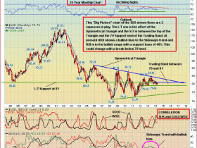 Wie man darin sehen kann, handelt es sich um einen sehr langfristigen Chart der bis 1984 zurückreicht. Der Chart ist übrigens nicht von mir, sondern auf der Seite von thebullbear.com veröffentlicht worden. Der Analyst hat sämtliche Hochs und Tiefs verbunden und dabei einen fallenden Keil, auch Bull-Keil genannt, erhalten. Nun stelle ich mir die Frage, was passieren wird, wenn der Dollar die untere Trendlinie bei ca. 75 nochmals erreichen wird. Wird dann der Dollar zum unberechenbaren Supergeschoss und bricht diesen Keil nach oben? Die aktuelle Wirtschaftslage der USA spricht eigentlich klar dagegen. Auch die Machtverteilung nach Asien dürfte in den kommenden Jahrzehnten weiter Bestand haben. Wie kann in einem solchen Szenario also der Dollar in den Himmel schiessen? Ich weiss es nicht. Für mich passt es einfach noch nicht ganz zusammen. Aber nebenbei: Sogar Bullkeile können manchmal barish brechen ;)