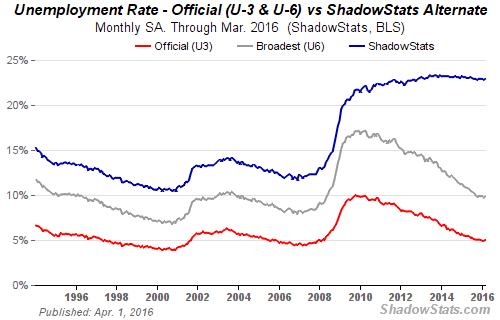 Somit dürfte die wahre Arbeitslosenrate nicht bei den offiziellen 5% sondern deutlich über 20% liegen, wie das ja schon an anderer Stelle auch schon festgestellt wurde.