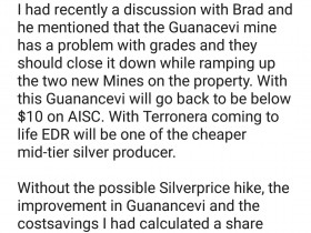 • Wie in obigem Artikel beschrieben, werden/wurden die relativ hohen AISC maßgeblich durch eine einzige Mine verursacht. Ohne diese Mine lägen die durchschnittlichen AISC bei sehr guten ca. 10 USD/Unze. Diesbzgl. hier noch ein interessanter Kommentar zu dem o.g. Artikel aus SA angehängt.