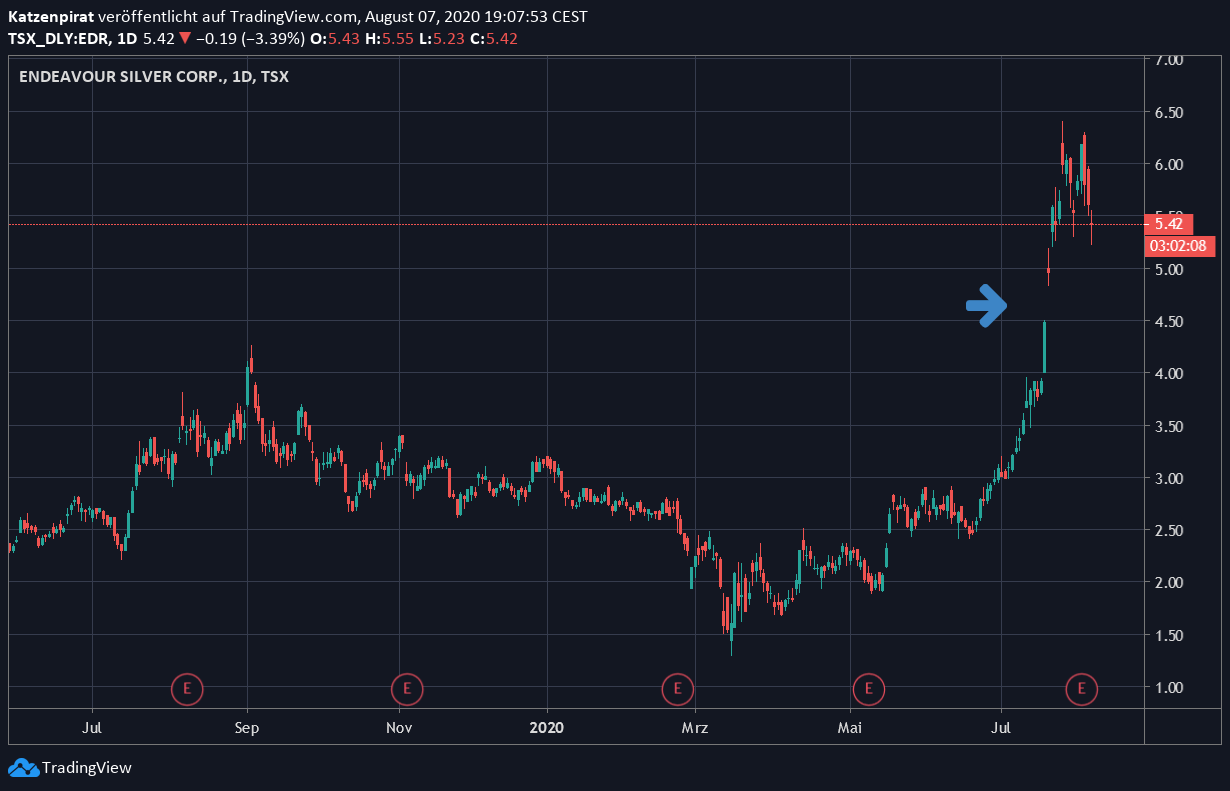 Unter normalen Umständen hätte ich jetzt auch mindestens die Hälfte verkauft auch auf das GAP im Chart gesehen, allerdings habe ich bei den Silber Explorern und kleinen Gold-Produkzenten seit Mai immer wieder Verkäufe getätigt und habe mein Depot nun aktuell um ca. 50% an Aktien geschröpft. Ich bin damit an meinen Grenzen gestoßen und ansonsten schon sehr zufrieden mit den Gewinnen und lasse EDR deshalb weiter liegen, ich denke die langfristige Perspektive ist hier auch entscheidend wie von hedda bereits erwähnt. Ich denke Silber hat seinen Deckel weggesprengt und EDR dürfte damit zukünftig in eine Phase nachhaltiger Profitabilität kommen mit Preisen jenseits der 20 Dollar.
