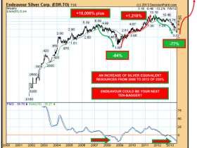 „...Geht es nach Meinung Zihlmanns und Portmanns könnte sich der Wert der Aktie von Endeavour Silver Corporation verzehnfachen. Das Unternehmen verfügt über beträchtliche Ressourcen an Silberäquivalent, welche sich von 2008 bis 2012 um 230% erhöht haben. Die gesamten Cashkosten je Unze werden für 2013 auf 20,75 USD geschätzt...“