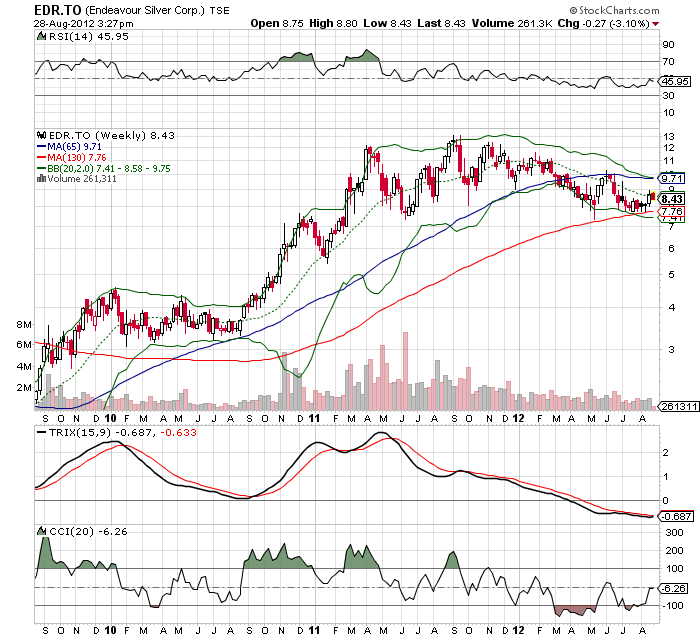 „...Geht es nach Meinung Zihlmanns und Portmanns könnte sich der Wert der Aktie von Endeavour Silver Corporation verzehnfachen. Das Unternehmen verfügt über beträchtliche Ressourcen an Silberäquivalent, welche sich von 2008 bis 2012 um 230% erhöht haben. Die gesamten Cashkosten je Unze werden für 2013 auf 20,75 USD geschätzt...“