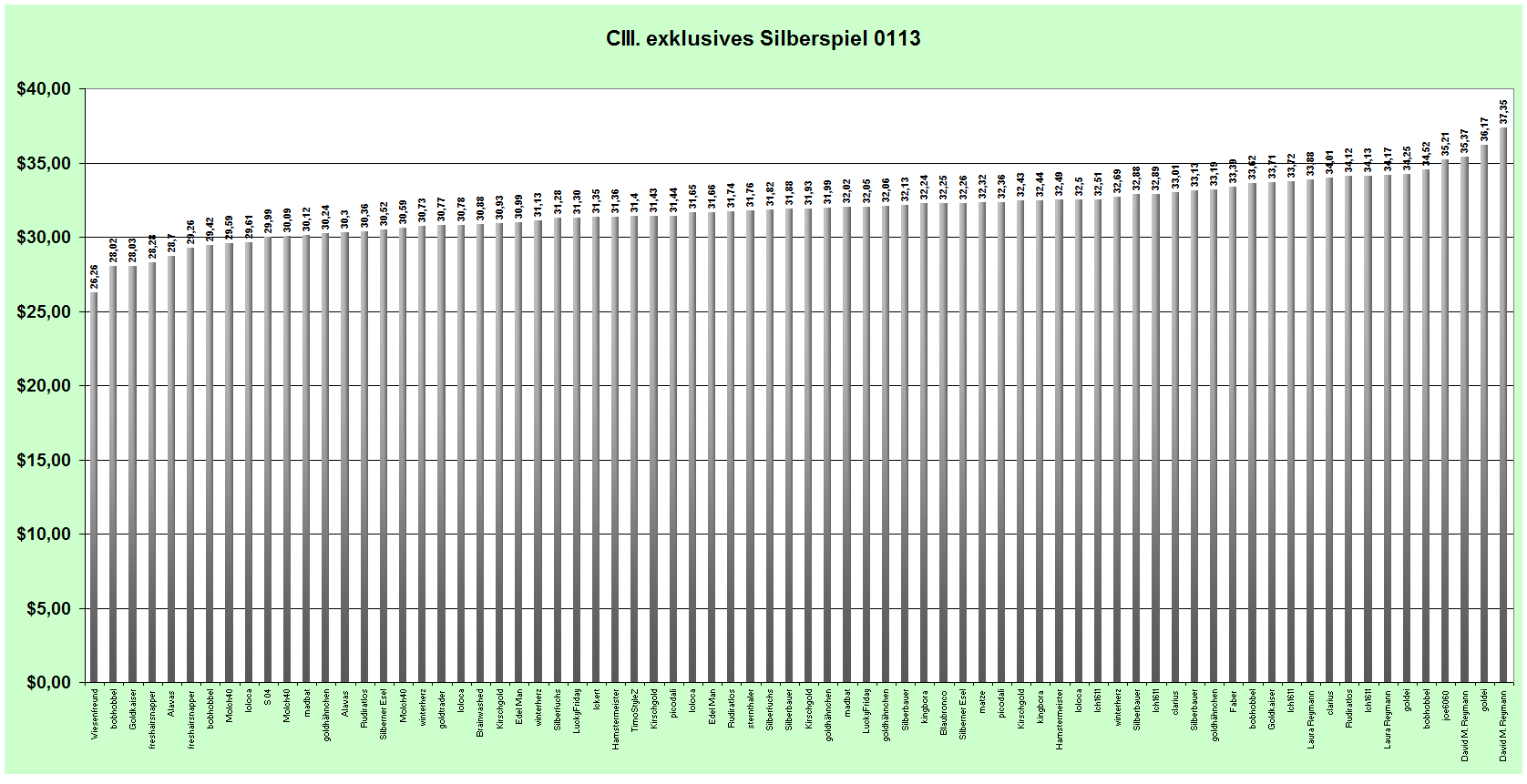 Silberner Esel hat ganz Recht mit dem Schlusskurs von $ 31,47. Somit ergeben sich folgende Gewinner und Ausschüttungen: