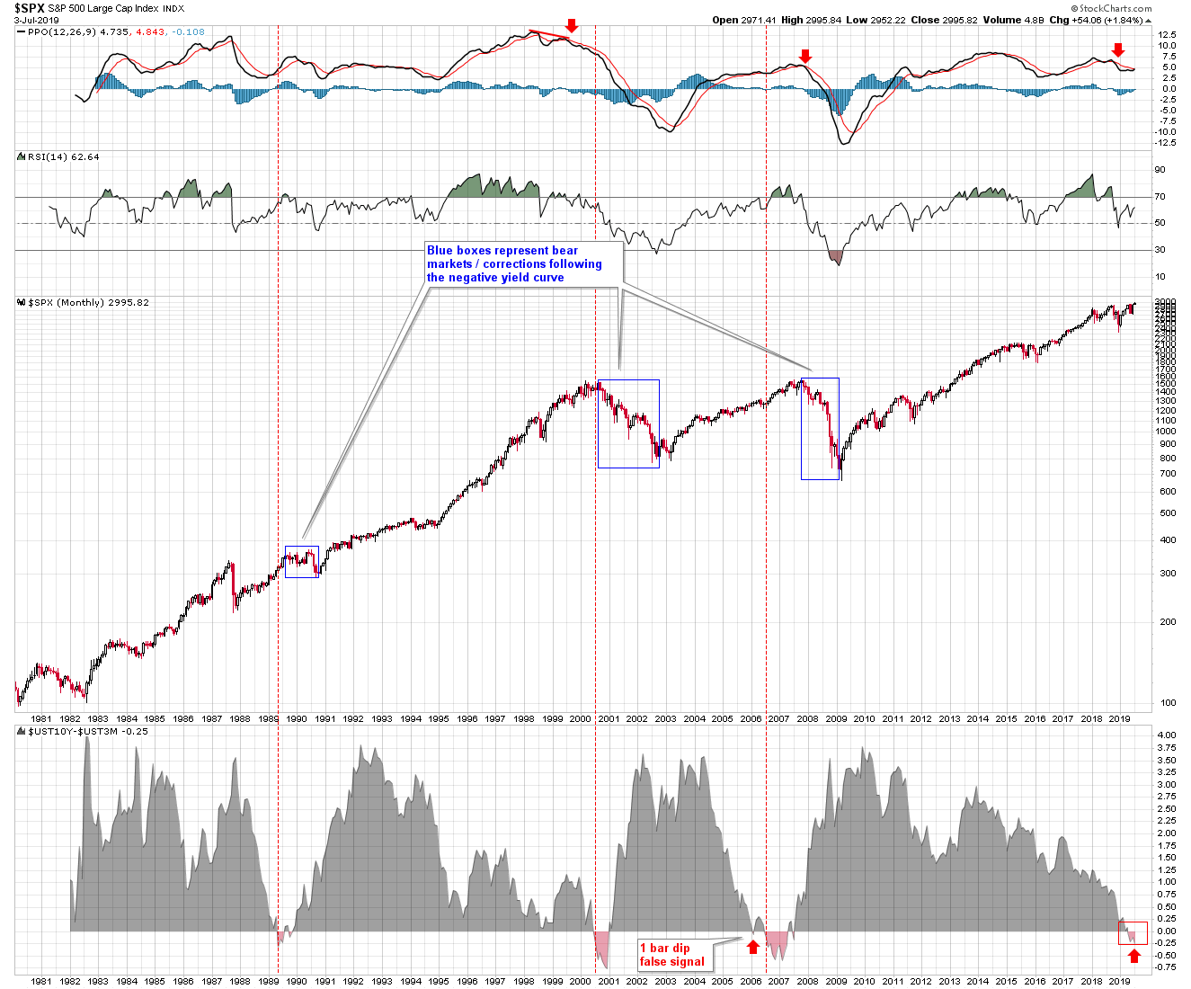 Immer wieder mal einen Blick wert, die Yield Curve und US-Aktien....