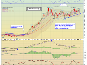 Aktien: Für mich offenbart der langfrisige Monatschart, dass Aktien bereits in einem Bärenmarkt sind... obwohl kurzfristig gar neue Highs entstehen können. Da ich den Monatschart und die bärischen Indikatoren (macd) schon mehrmals gezeigt habe, hier mal ein Wochenchart (Chart 1). Unschwer u erkennen, dass US-Aktien drauf und dran sind, endlich den überfälligen Gang nach unten anzutreten.