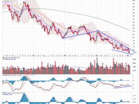 Chart2: Zeigt insbesondere, dass ein Rally noch immer ein Bärenmarktrally wäre. Trendline bei weitem nicht gebrochen und Anordnung der MA's sind natürlich noch nicht bullisch.