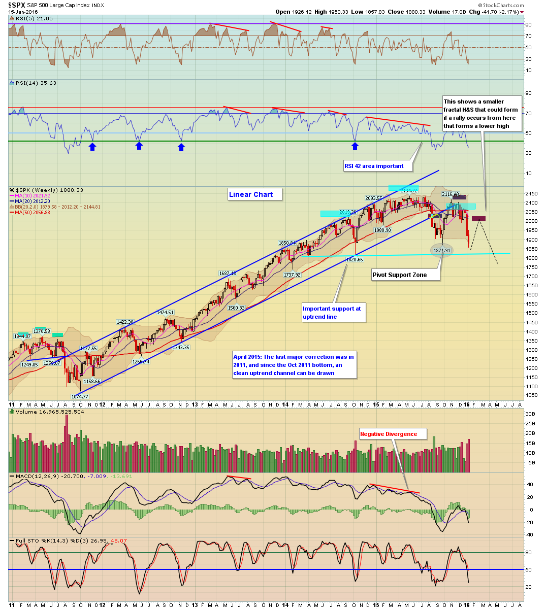 Auf den Dax übertragen könnte das bedeuten, dass sich dieses Jahr ein Tal bildet, von dem aus es gegen Ende des Jahres wieder an das Top ran läuft, um dann aber endgültig in 2017-2019 in eine ausgedehnte Baisse überzugehen (Auslöser Griechenland-Pleite, Flüchtlingskosten-Pleite).