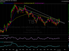 Gestern und vorgestern bin ich eine längerfristige Wette auf Zinserhöhungen (Bonds short!!) in den USA eingegangen. Grundsätzlich bin ich nicht so zufrieden mit meinem gewählten Instrument (TBT), da dies eine künstlich angefertigter ETF ist. Ich habe trotzdem gekauft.