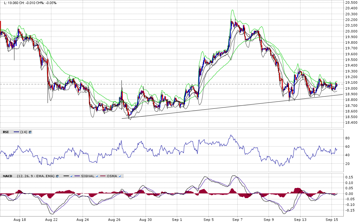 Chart 1 ist SDS, Ultrashort s&P 500. Und für mich schaut es so aus, als ob es nun schnell gehen könnte. Bei einem Ausbruch nach oben, sprich Aktien fallen, sind in den Indizes ganz rasch ein paar Prozente möglich. Im übrigen sieht mir Silber auch gefährlich aus. (Chart 2) Hält die Linie, ist es ok, falls nicht, dann sind hier 1 bis 1.50 US$ tiefer innert Kürze möglich. Sollte dies geschehen, dann wird es noch spannender......