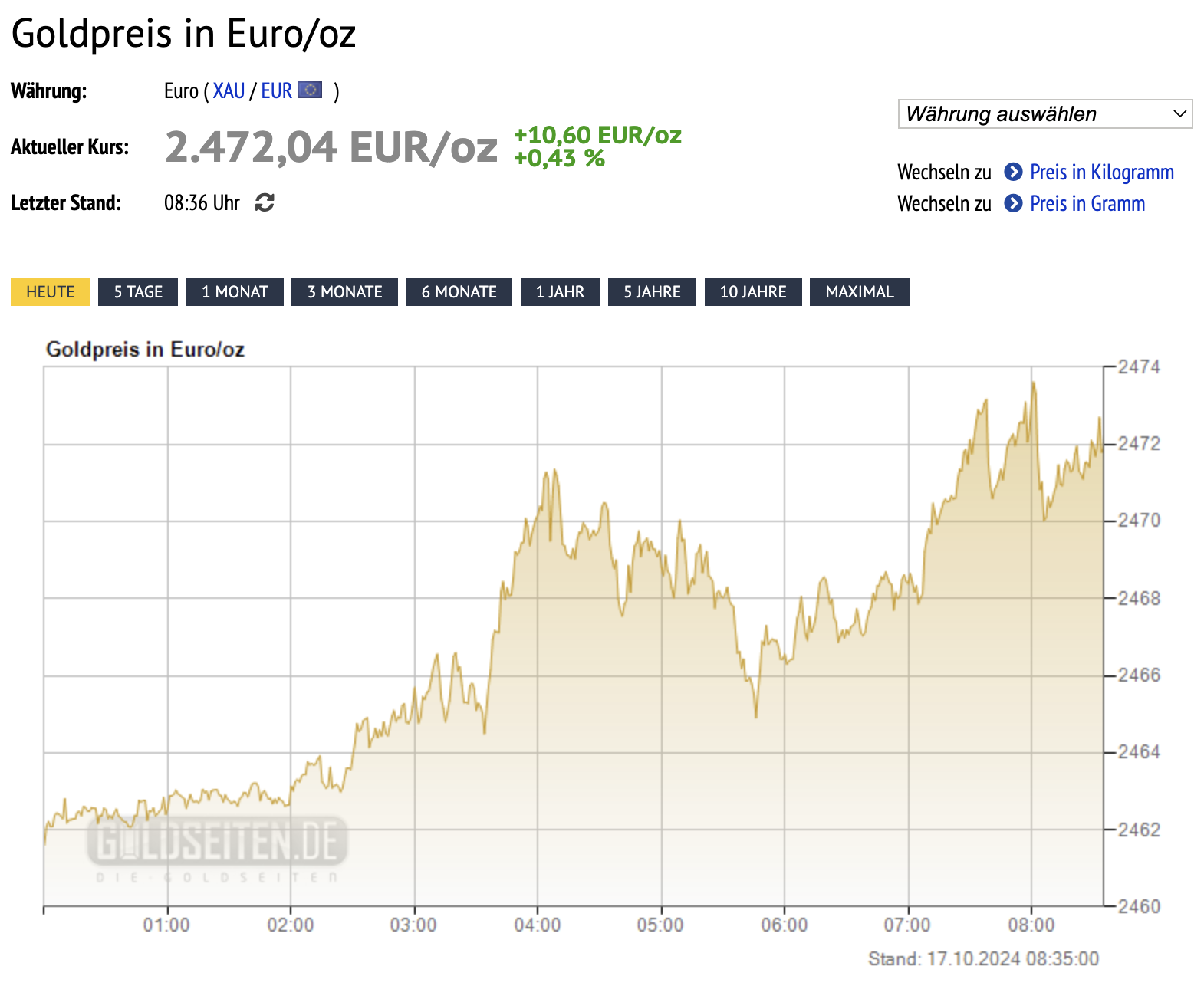 Wer hat es bemerkt? Um der Chronistenpflicht zu genügen, wir haben heute Vormittag ein neues Allzeithoch beim Gold (in USD) markiert.