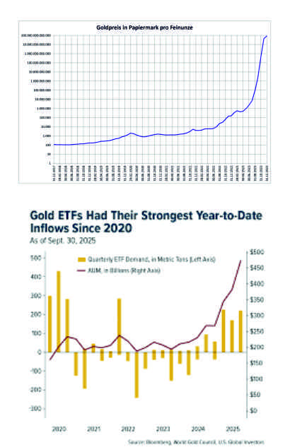 Unten mal ein Vergleich des Goldpreis Charts 1917 - 1923 und 2020 und 2025.