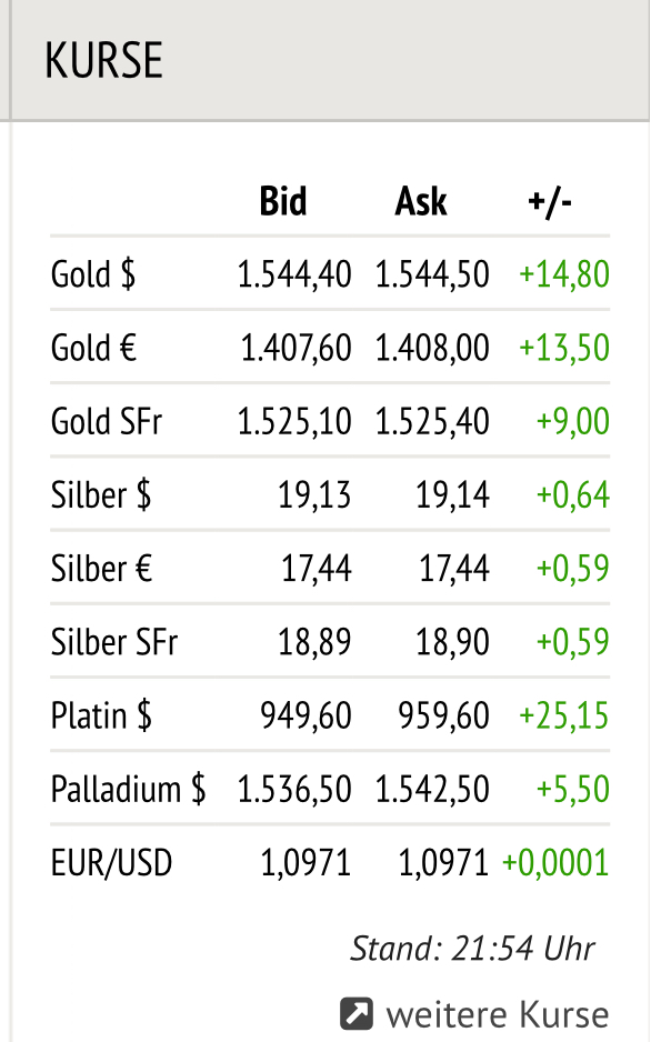 Ich hatte irgendwann die wöchentliche Silberstatistik meiner Reichtümer bei <18 €/oz beendet.