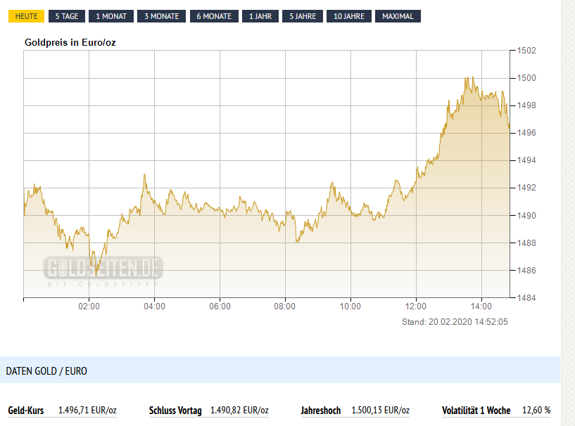 • Die Leutchen, die sich im Dezember vor den einschlägigen Edelmetallhandel-Läden in der Arschkälte stundenlang die Füße in den Bauch standen, um ihre Eurozettel noch anonym in Gold umzuwandeln, werden nun entschädigt. Der Goldpreis für eine Unze ist seit dem je nach Kauftag zwischen 130 und 190 Euro gestiegen. [smilie_blume]