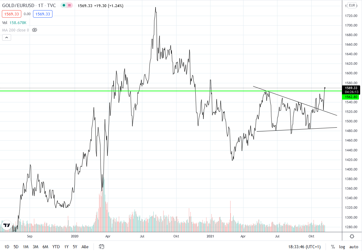 in Euro reicht 1% aus, um das lokale Hoch zu toppenEs sieht insgesamt gut aus - und wenn ich das sage, dann ist es meist ein ganz schlechtes Zeichen