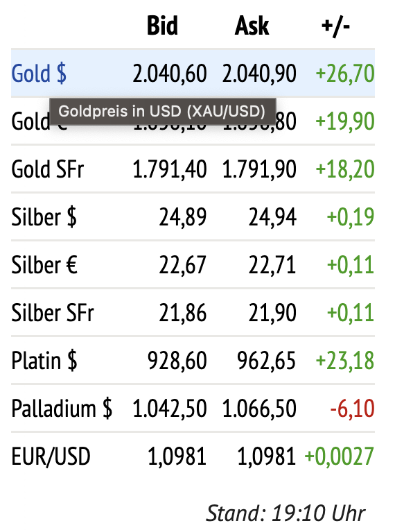 Und schon wieder gehts rauf......nur als Bsp....die Goldmark heute früh noch zu 711€ - jetzt zu 721€.