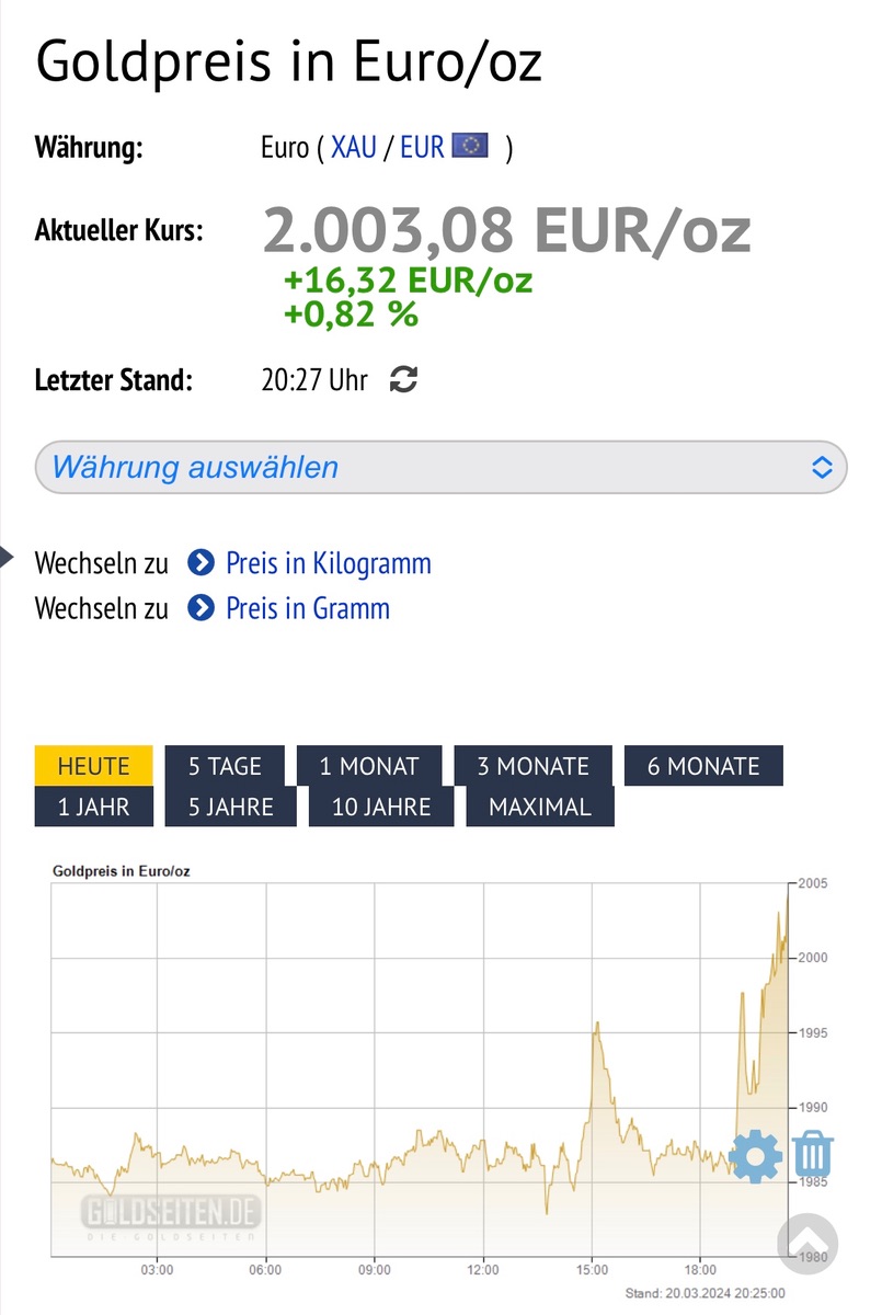 Sie ersticken in Gold, sehr viele verkaufen (wg ATH oder wegen Liquiditätsproblemen). Sie müssen gute Ware Goldmark, Barren etc wg Liquiditätserhalt in die Schmelze geben. Abschlag ! von 300,-€/kg auf Spot….