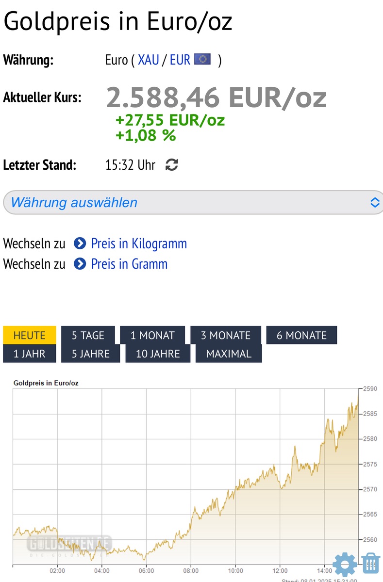 USD gegen € schwächer. Daher kann es schon einen Tick über 2600 € gehen,