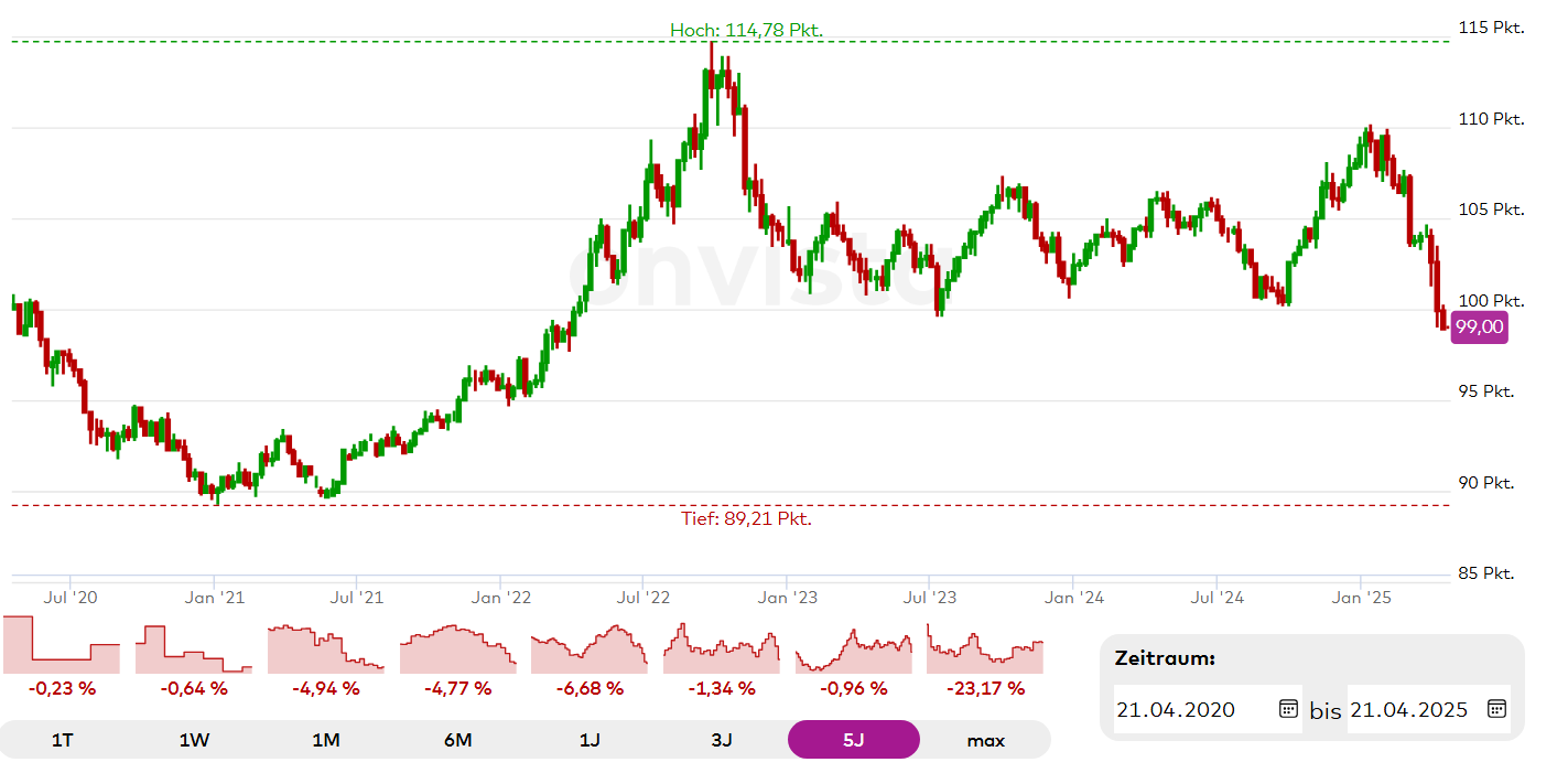 weit mehr als 100 Jahreeinmal abgesehen vom Corona Ratio, aber das kann man nicht wirklich als Maßstab sehen