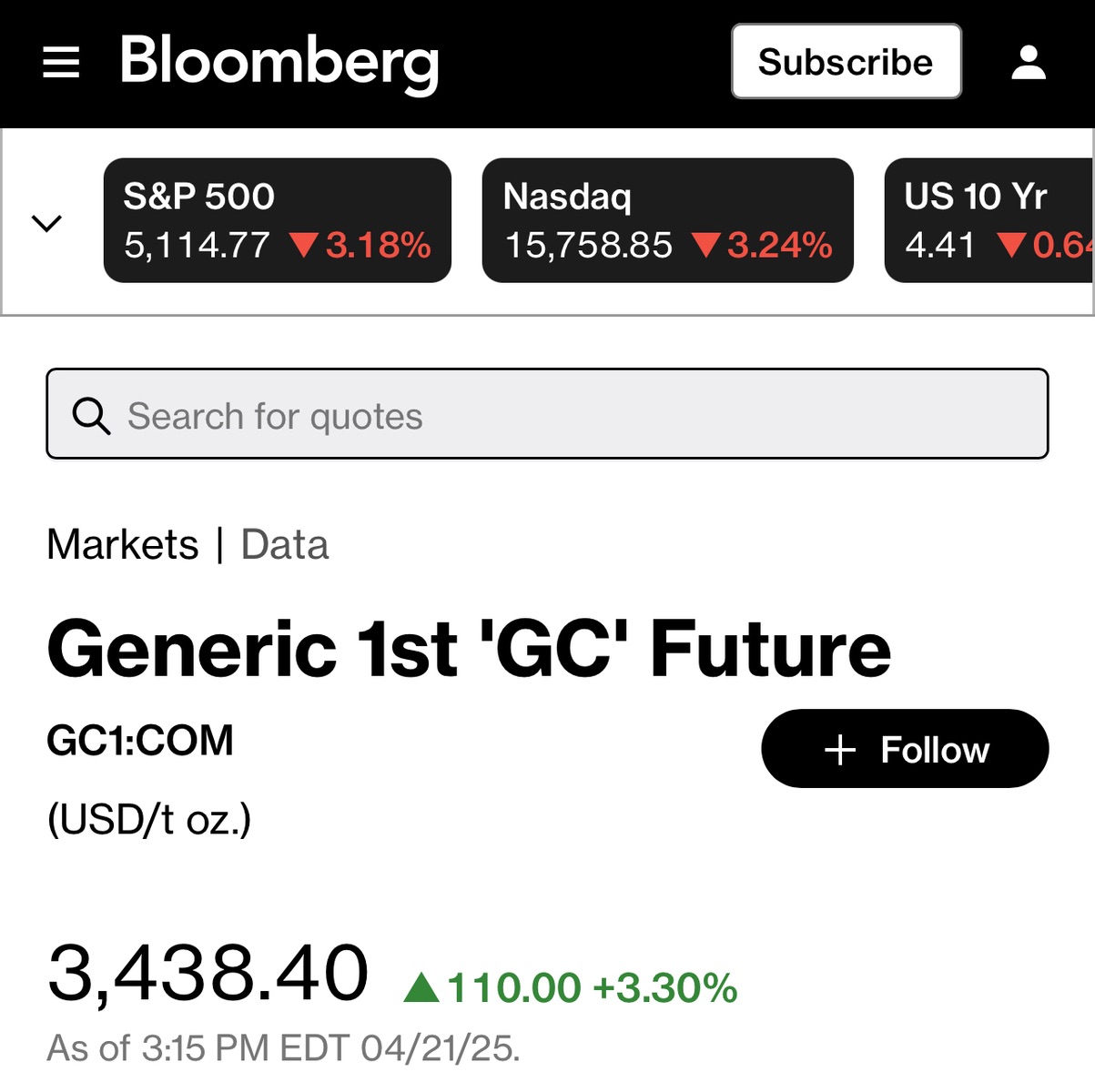 Glaube ich nicht. Die goldseiten-Startseite, n-tv, onvista und Bloomberg haben Gold aktuell um 4426US$, also knapp unter dem heutigen, frischen Allzeithoch.