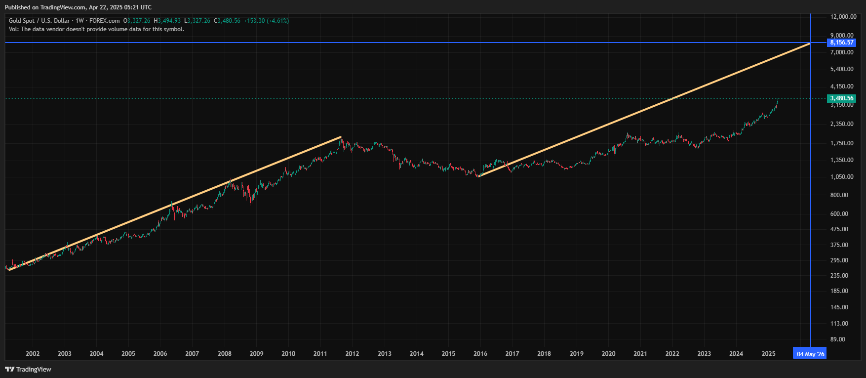 Das ist der Punkt....noch zu Jahresbeginn konnte man sich Gold bei 3500$ oder 5000$ nicht vorstellen....4 Monate später ist das fast ausgemachte Sache.