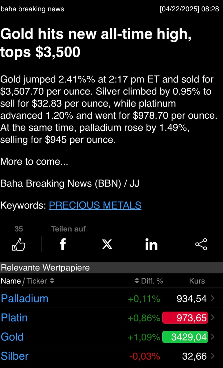 DAS ist mir heute morgen auch aufgefallen (okok Tod vom Papst sind die Titel Stories) - aber von NTV bis Bild ...nix mit Gold / ATH ..."jetzt noch kaufen" oder "so verkaufen Sie richtig.."