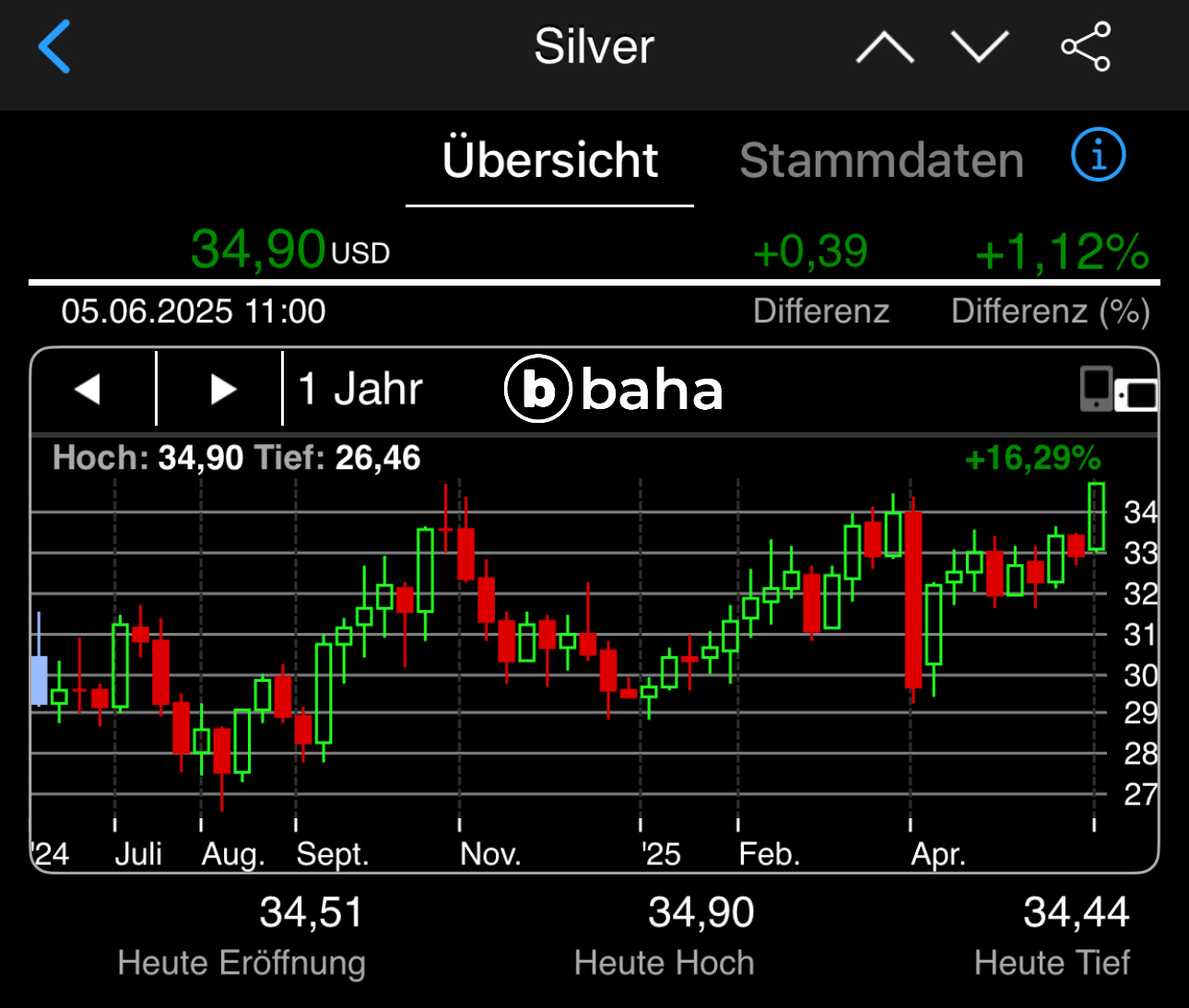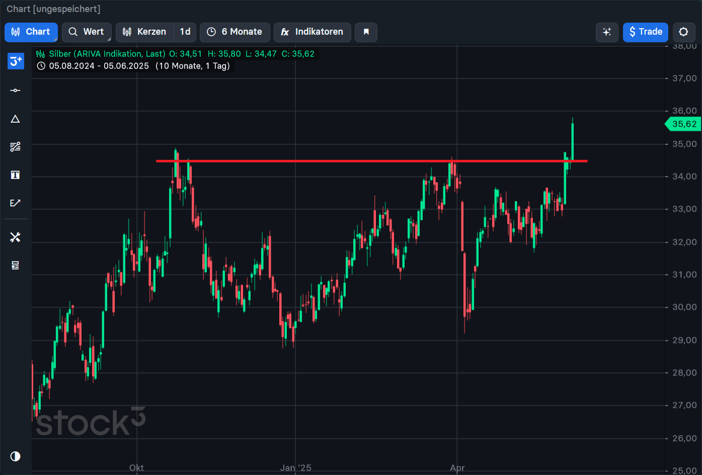 Zack, zack über die 35 $ drüber und jetzt aufwärts immer, rückwärts nimmer.