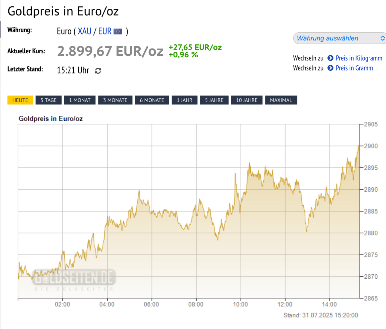 Jetzt scheint die Abwertungsrunde im Euro zu beginnen, da ist verglichen mit USD Preisen noch Nacholbedarf. Und der Kotau der EU vor dem Don, ob überhaupt umsetzbar oder nicht, dürfte das Signal dafür gewesen sein.