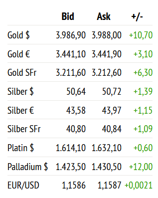 Silber ist unbeirrt stark, Gold hat vorübergehend ein paar Federn gelassen und es liegt ein Geruch von Angstschweiß und verbranntem Fett in der Luft.