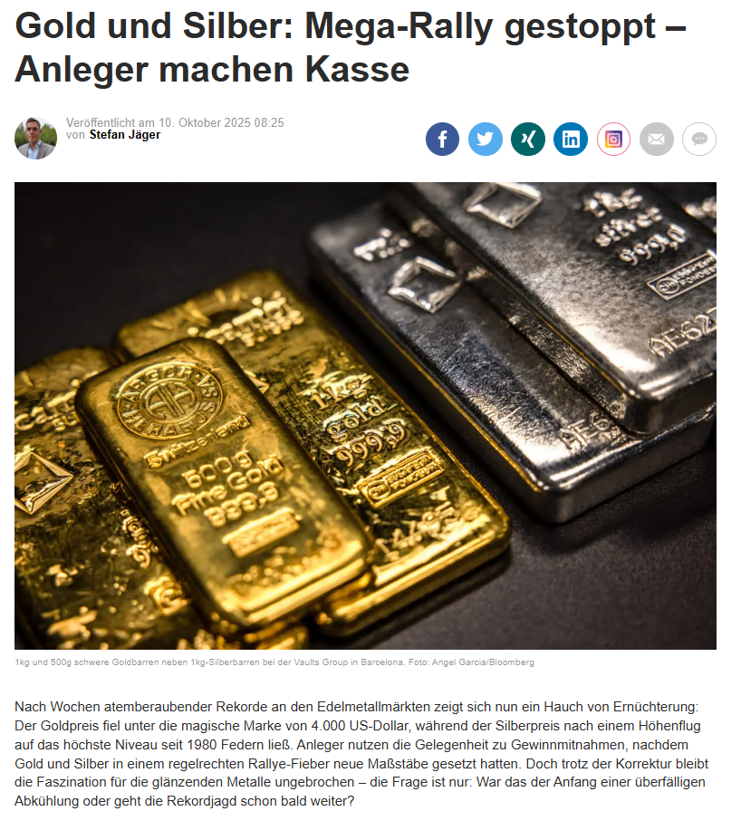 zb: Gold und Silber: Mega-Rally gestoppt – Anleger machen Kasse