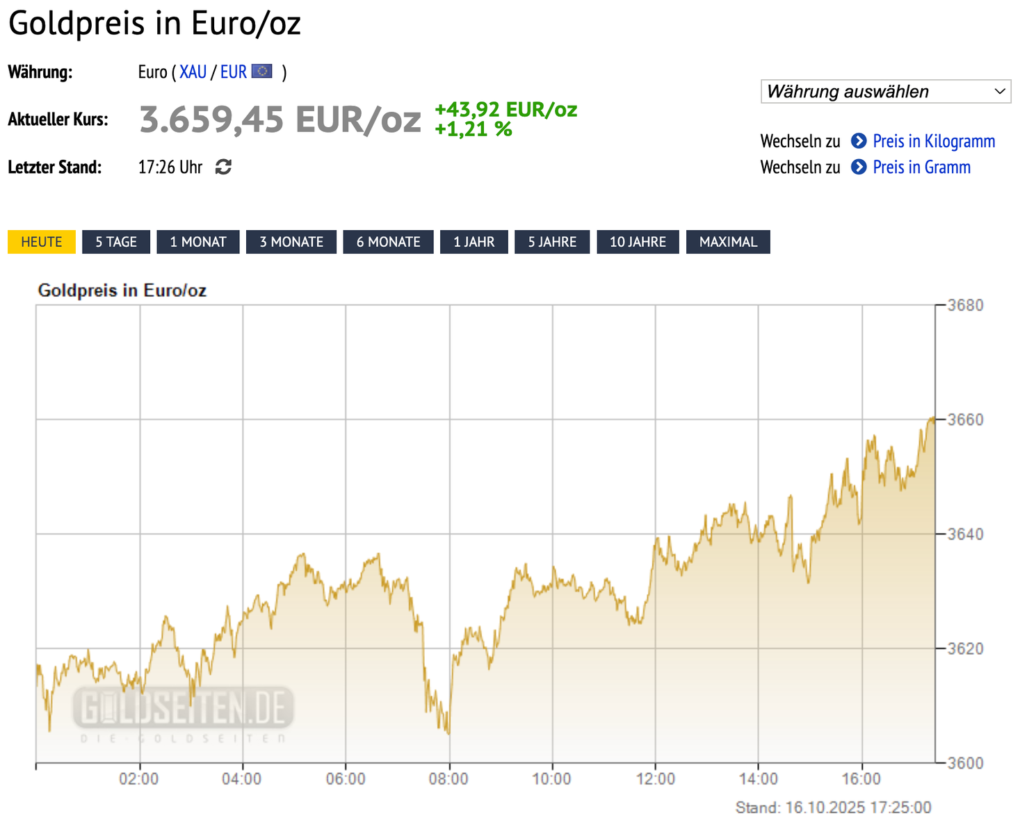 Der Preis heute (billigster Anbieter Gold.de) ist genau 29706,65 €