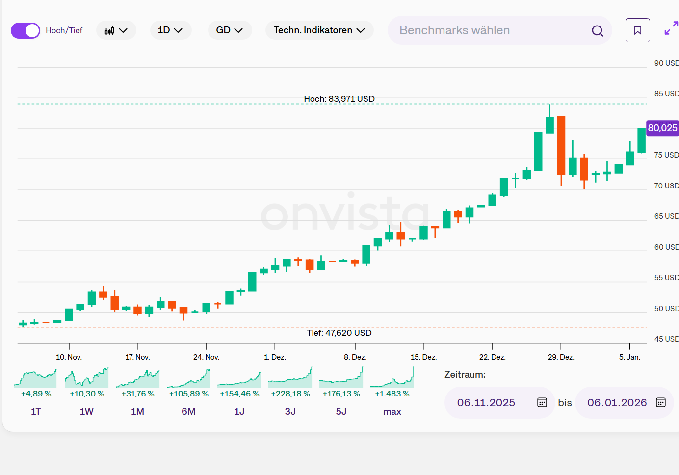 naja ... BISHER war im Kerzenchart nur ein roter Flashpeak-Docht oberhalb der 80 Tollores zu sehen ...