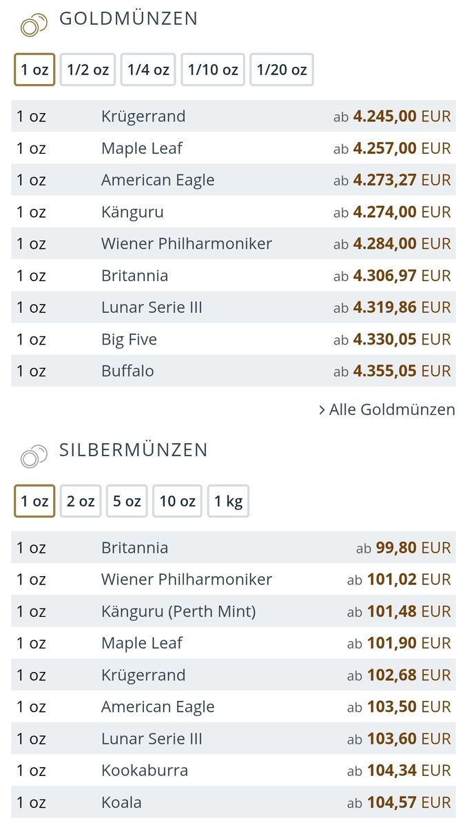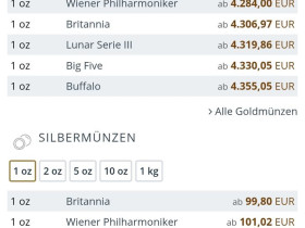 Gold / Silber ist viel zu teuer und wirft keine Zinsen ab. 😂