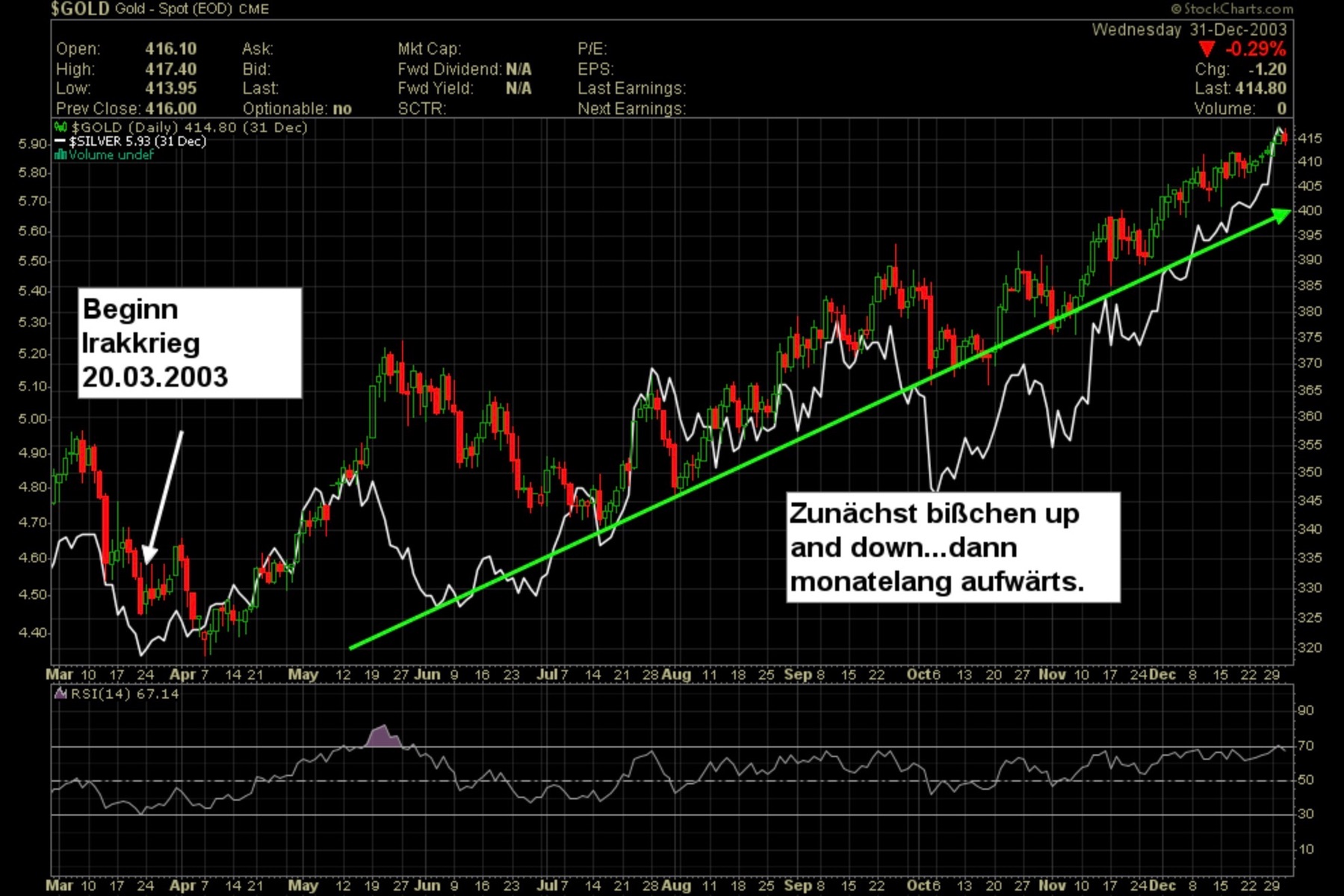 Schrieb Martin Siegel früher mehrfach in seinen Kommentaren, Sätze wie "Krieg ist schlecht für den Goldpreis." Hier mal aus neuerer Zeit, 2022: