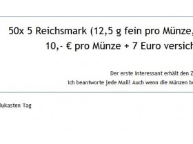 Falls doch, habe ich ja für diesen Zweck extra meine Reichsmark, sowie halbe-Mark-Stücke.