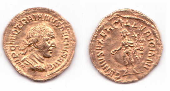 habe vor längerer Zeit eine kleine Schachtel mit Goldmünzen von meinem Vater bekommen. Die Goldstater und Solidus konnte ich sämtlich bestimmen, die gezeigte Münze ist übrig geblieben. Vielleicht kann Mithras helfen?