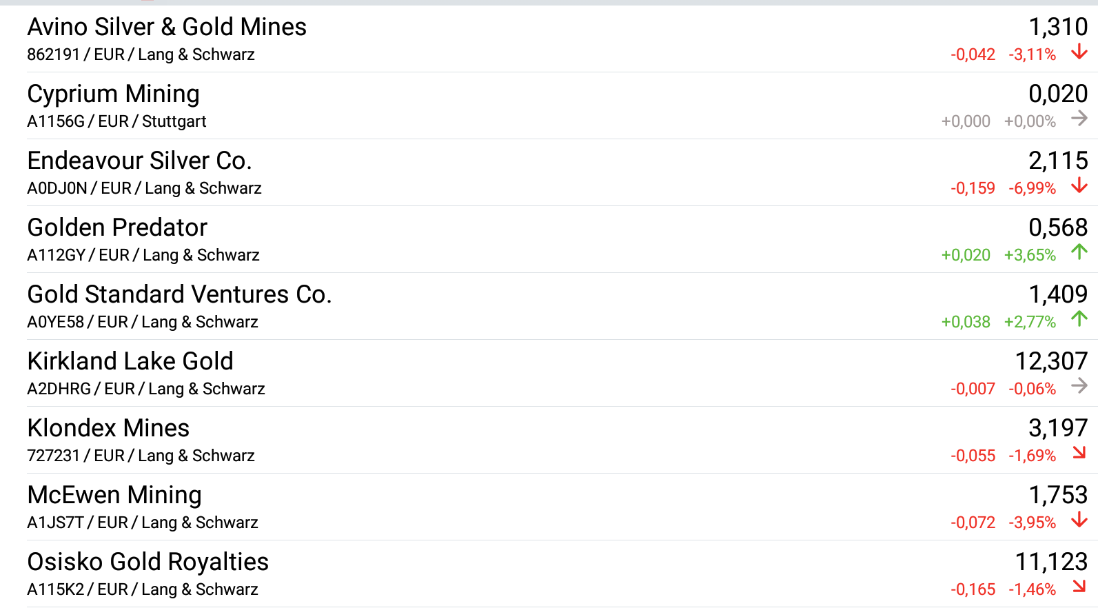 Meine Minen auch heute grotten schlecht...im Durchschnitt Minus von 2,5%...