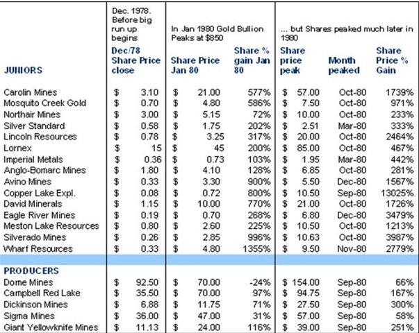 Top-Gewinner in der Gold-Hausse von 1978 – 1980; Quelle: sharelynx; goldreport